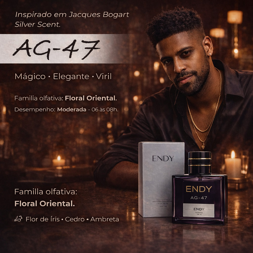O Perfume AG47 possui uma fragrância mágica e viril. Apresenta uma essência de contrastes, fresco e quente, moderno com uma distinção clássica.